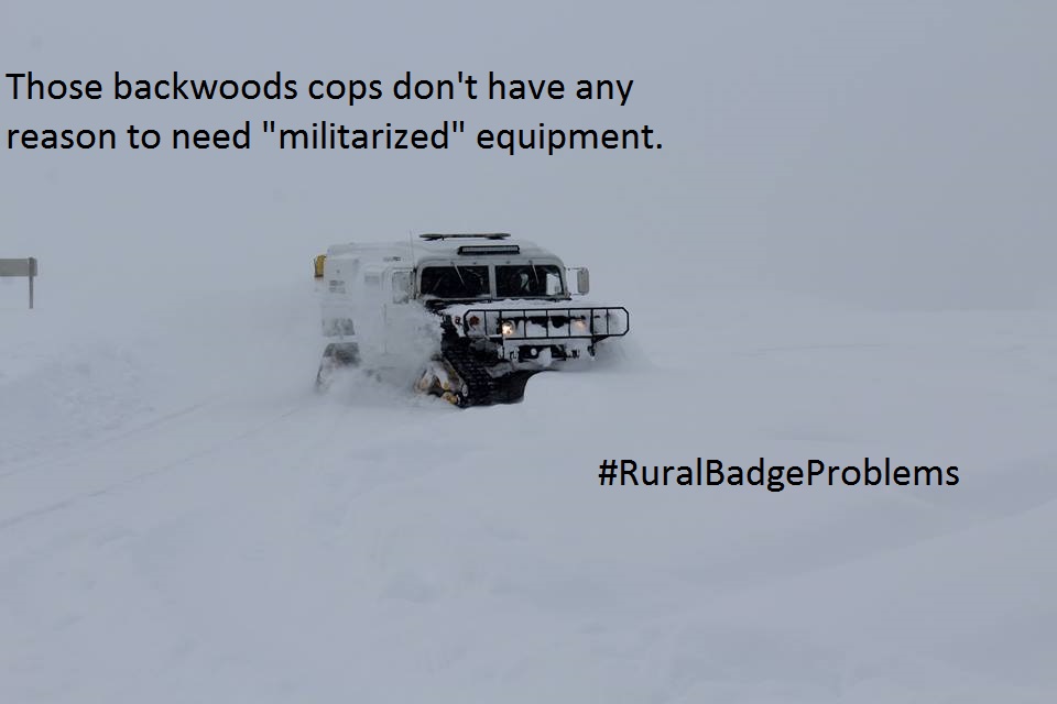 Well, then, ladies and gentlemen, pony up the funds to equip your officers with the appropriate gear your own selves, and you can paint that $350,000 Lenco Bearcat pink, if that makes you feel safer.