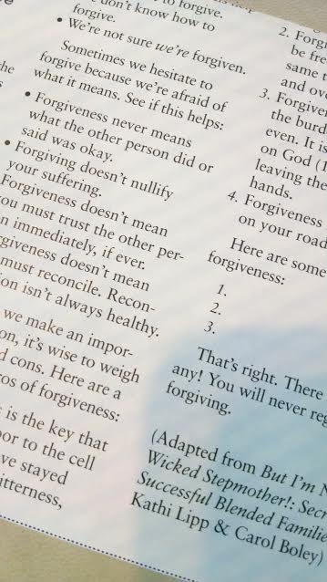 A board member was still reciting bits of churchy news, so I gave the little pamphlet a second look, and stopped. I read it again. This week’s question was about….what forgiveness isn’t. That was new.